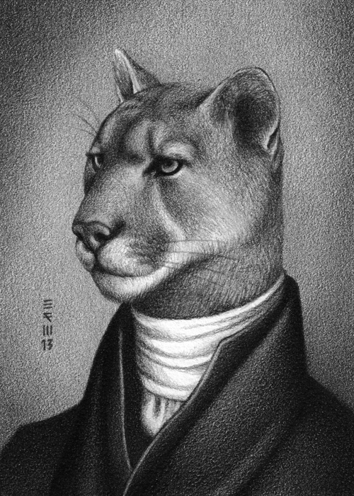 My Explorers series depicts European and American explorers as endangered animals from the region they are famous for exploring. This series was first exhibited at the Explorers Club restaurant in Columbus, Ohio. Click on images to enlarge.