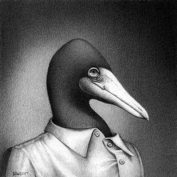 The Fowl Fraternity is a series of drawings of birds whose names could also be used to describe people. Click on images to enlarge.